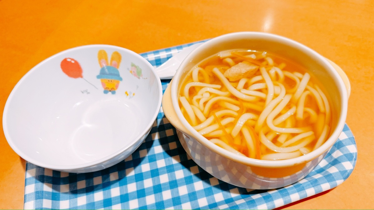 うどんはわかめとコーンが入っているので、苦手な子はわかめやコーンを分ける時にちょっと苦戦するかもしれないです。