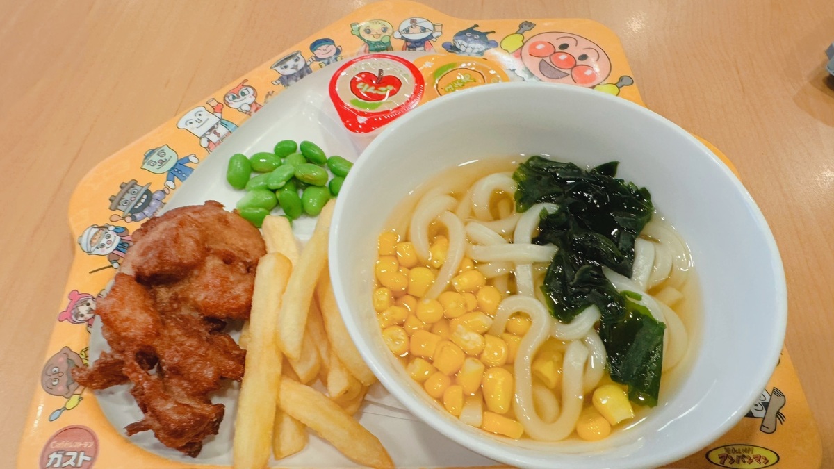 沢山食べる子や小学生でも高学年の子だとプチうどんの他におこさまザンギ(ザンギが2個のメニューで200円)などを追加して食べるとちょうどいいかも。