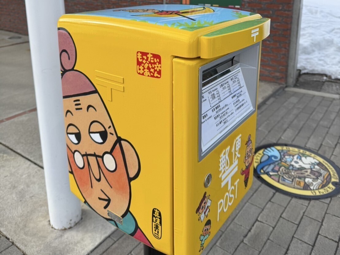 外にあるポストには懐かしい絵本【もったいないばあさん】が描かれています。
