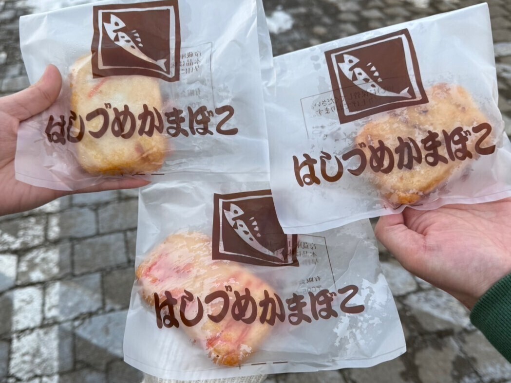 ディスプレイに並んだかまぼこをその場で揚げて提供してくれるので、揚げたてをいただくことができます♪