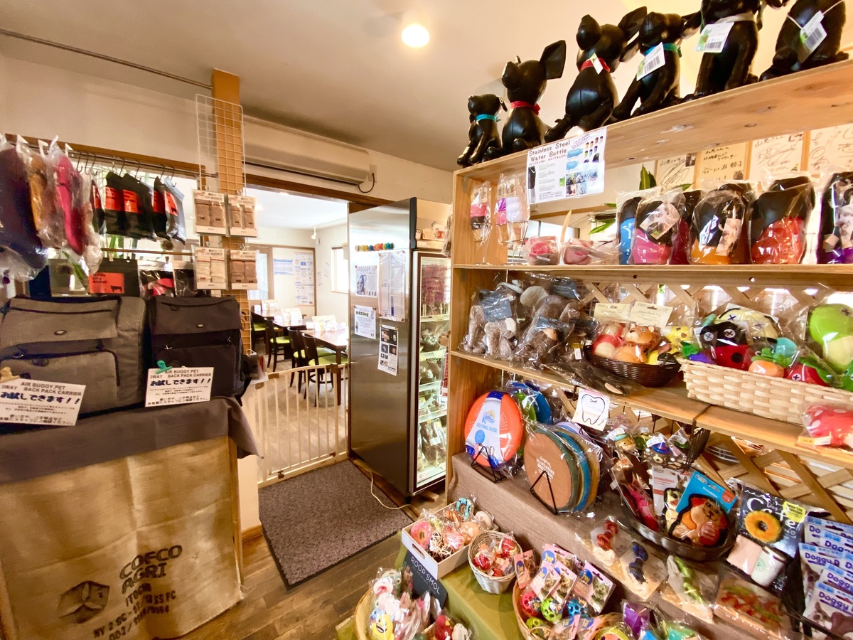 愛犬と入れるエリアはしっかり分かれているので、ペットが苦手な方でも大丈夫ですよ。その他、店内では鹿肉加工品やペット用品も販売されています。