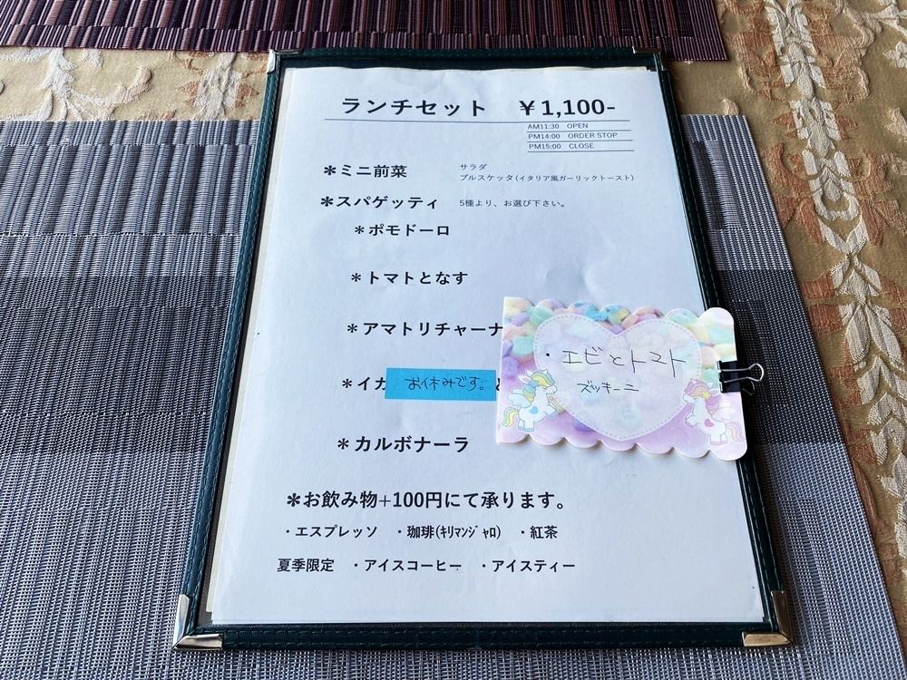 定休日の木曜日を除く、月曜日から土曜日にはお得なランチメニューがあります。(2024年12月)