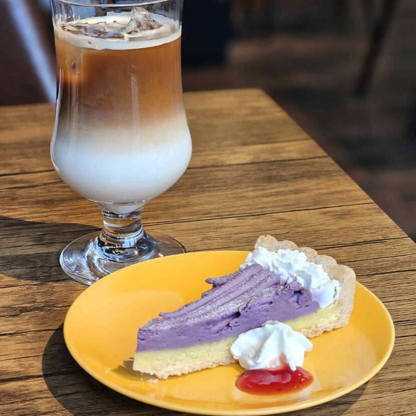 今回は『ケーキセットB』のキャラメルラテを紫いもとさつまいもタルトをご紹介。