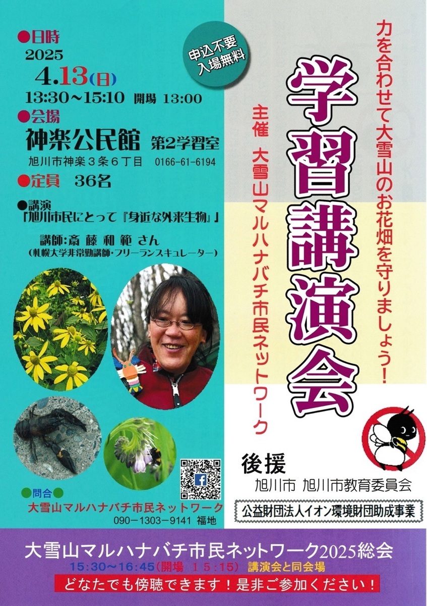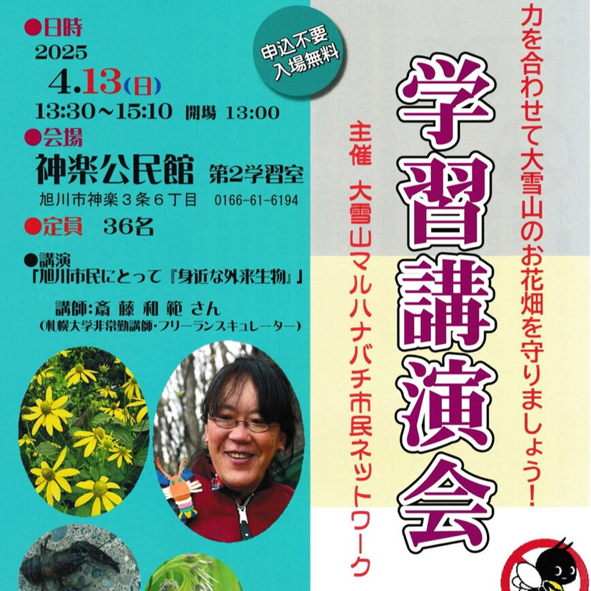 2025年4月13日(日)に旭川市の神楽公民館で『力を合わせて大雪山のお花畑を守りましょう!学習講演会』が開催されます。
