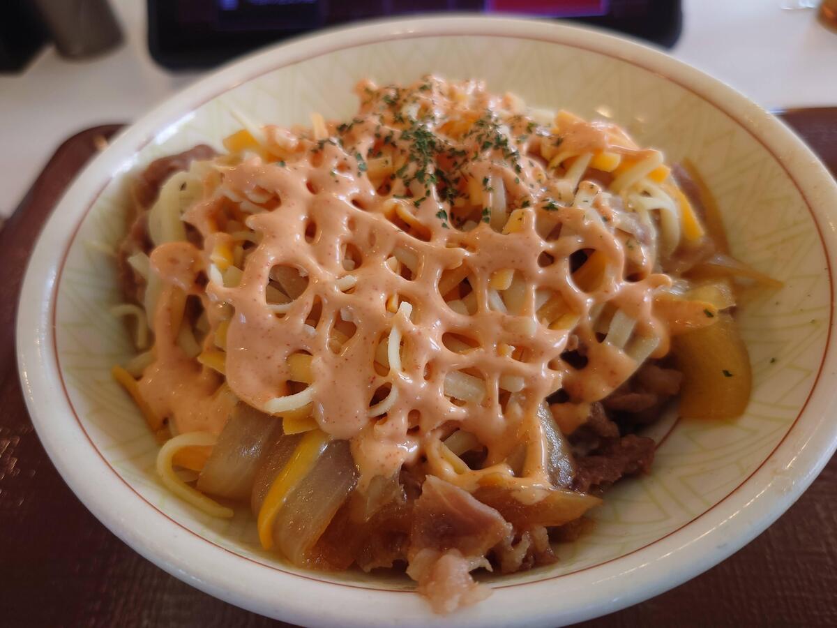 って事で「明太マヨチーズ牛丼」の中盛り。860円。