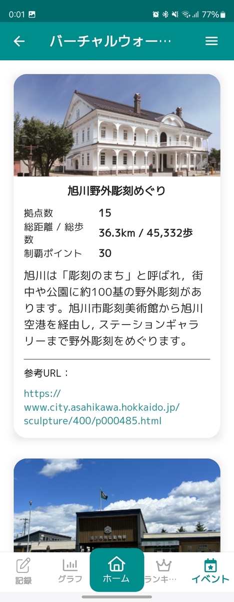 イベントページにはイベント情報の他、ヴァーチャルウォーキングといって距離に応じてスポットを巡る機能も。