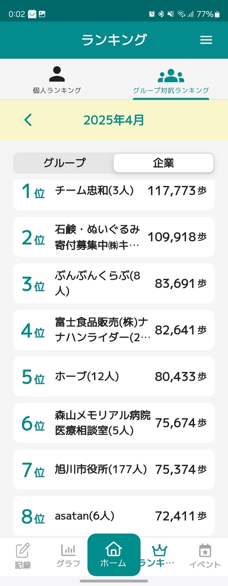 さらに、個人ランキングのほか、グループ対抗ランキングも!