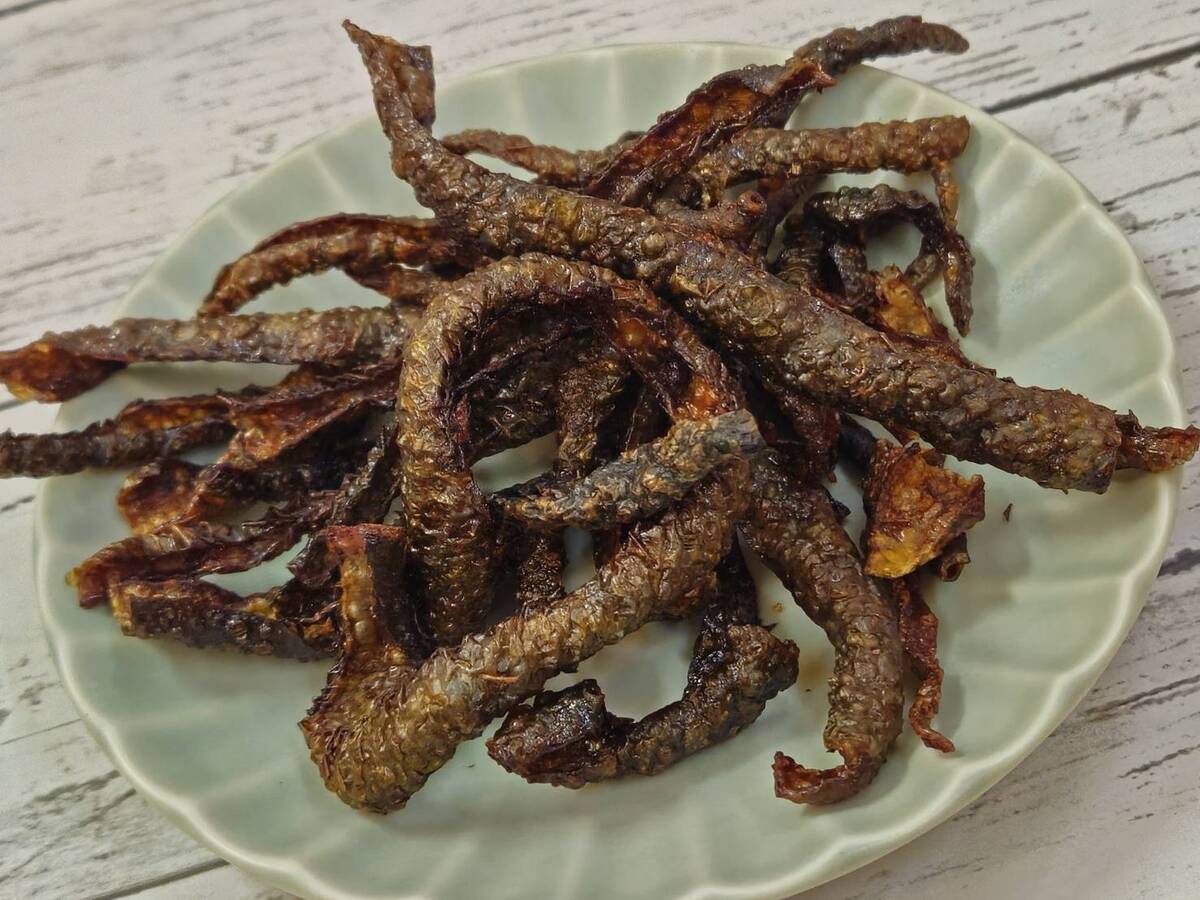 歯ごたえのあるパリパリ感はクセになる食感で、ブラックペッパーの効いたピリッとした辛さが鮭の風味と相性抜群。