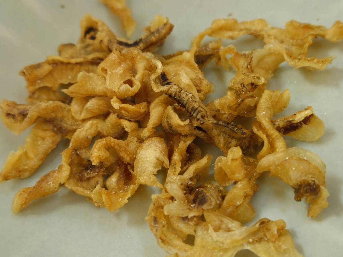 留萌市にあるヤマニ野口水産が販売する鮭皮チップス。