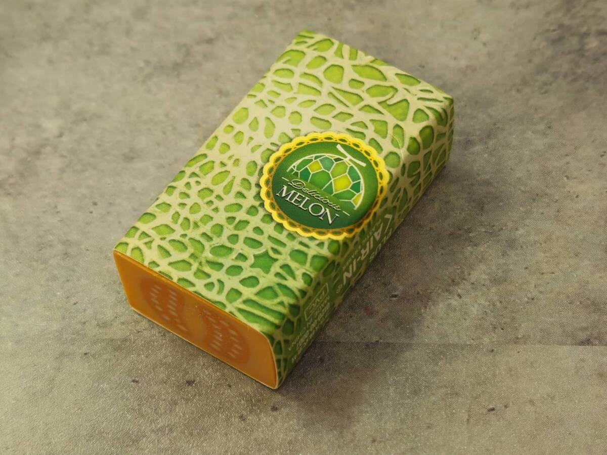 メロンの皮模様ケースが特徴的なこちらの消しゴム、リアルな質感はメロンそのもの!