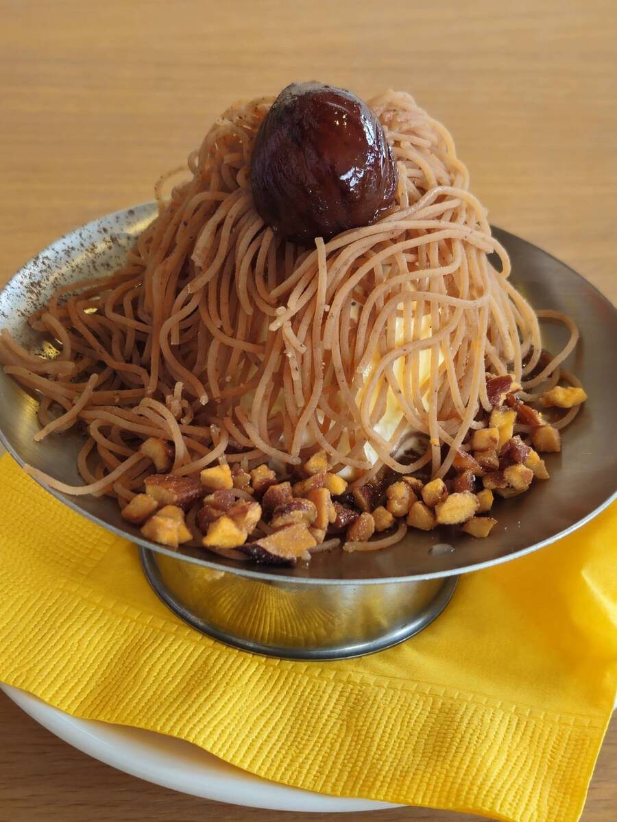 イタリア栗と砂糖だけを使用したこだわりの製法で、マロンクリームがたっぷりかかっています。