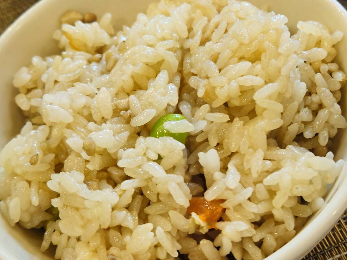 食べ応えある食感と五穀米の旨みを感じます。