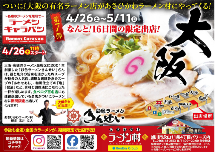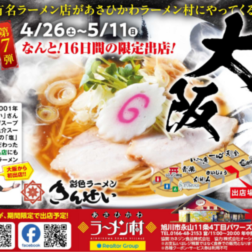 【4月26日~】あさひかわラーメン村に大阪の彩色ラーメンきんせい初上陸!