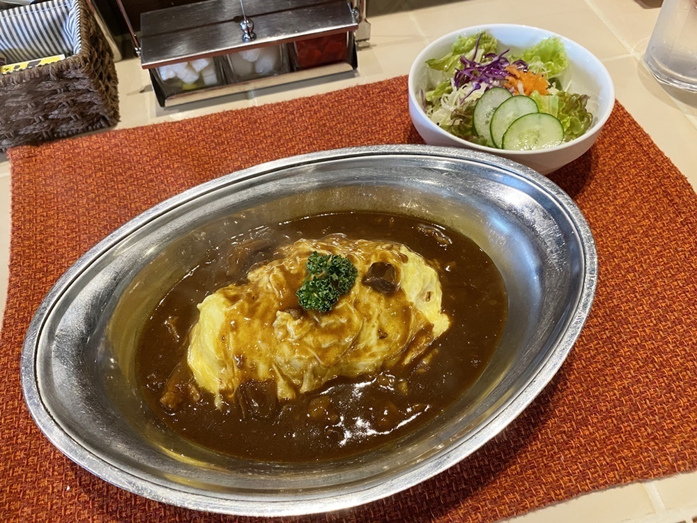 今回は、オムライスの中から「オムライスハヤシ」を注文。実はオムライスと同じくらいハヤシライスも大好きなのです。