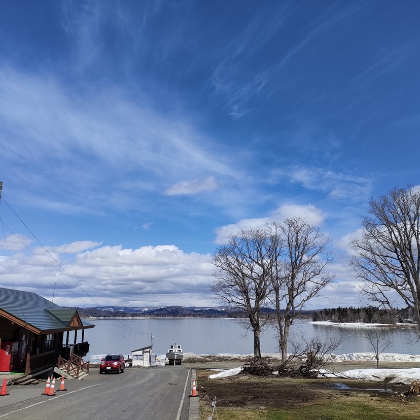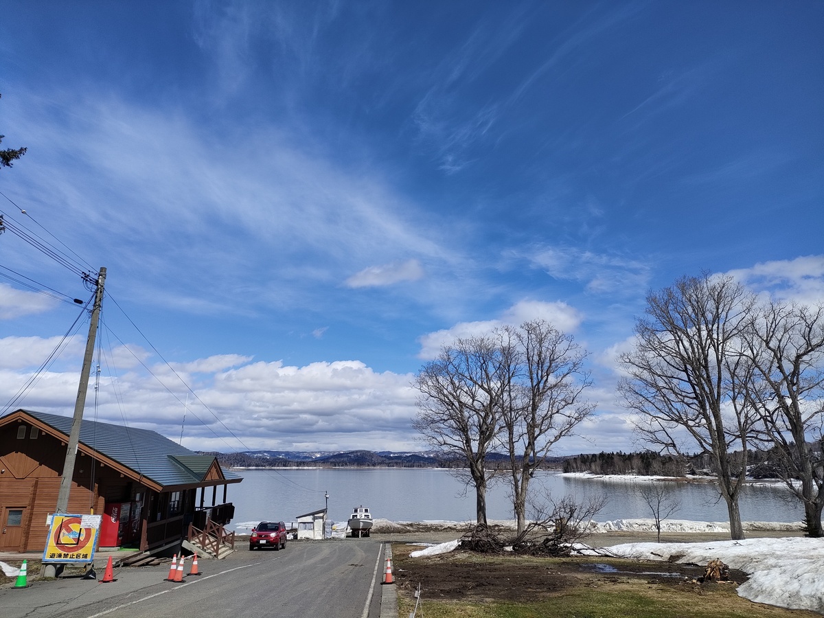 先ほどの「森salon」さんのある場所から国道をそれて少し進むと、朱鞠内湖畔に到着します。