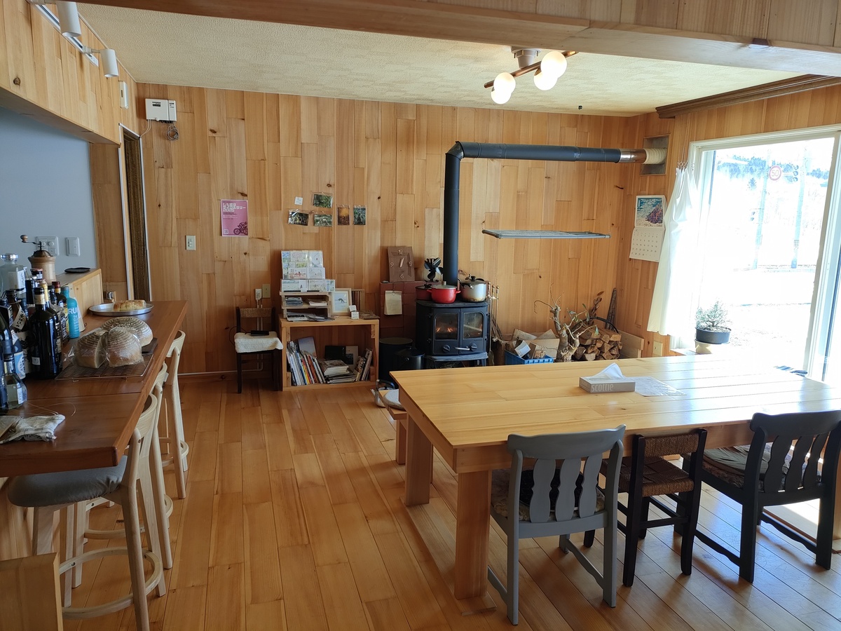 薪ストーブがとても良い味を出していて、落ち着きを感じれますね。