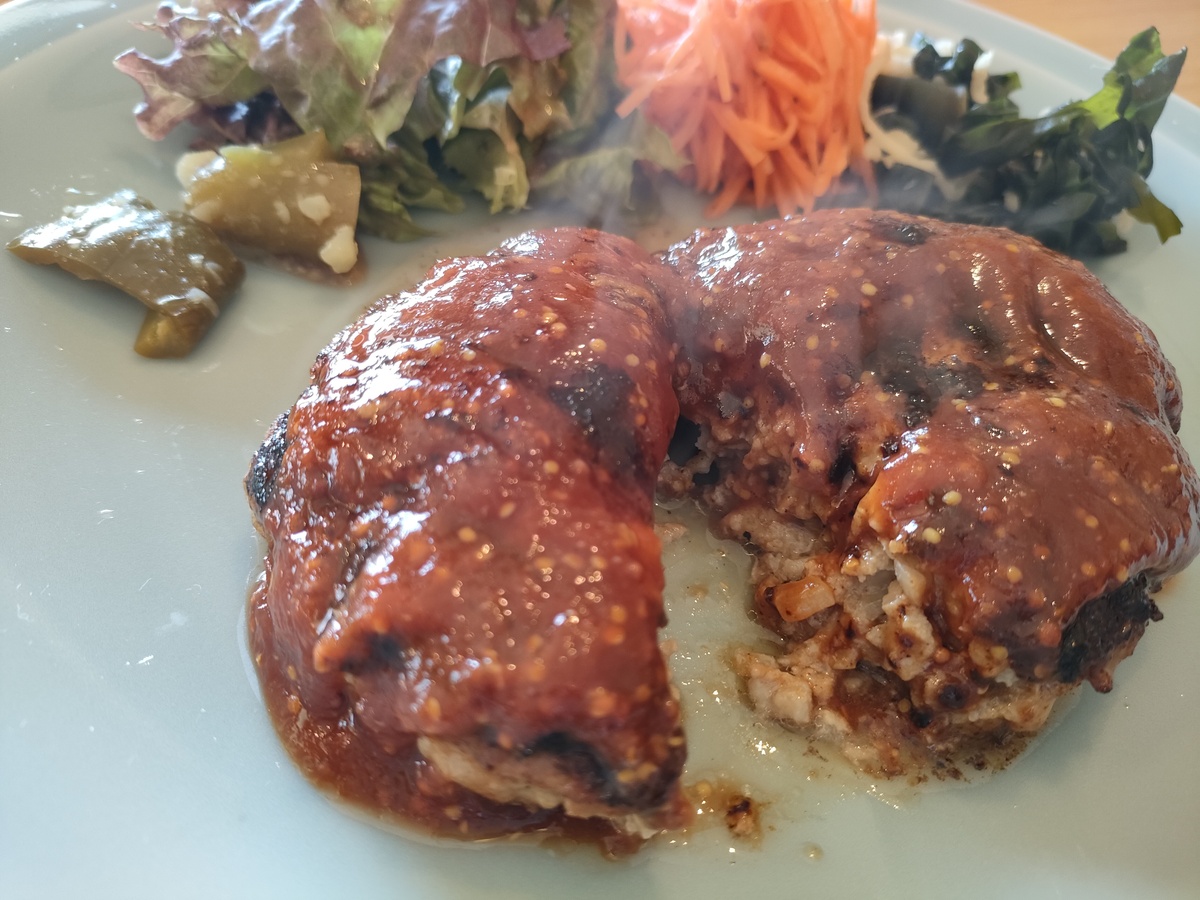 ハンバーグにはお肉の旨みが詰まっていて、外はカリッと焼き上がり、中はふんわりとして肉汁がジューシーに溢れてきます。