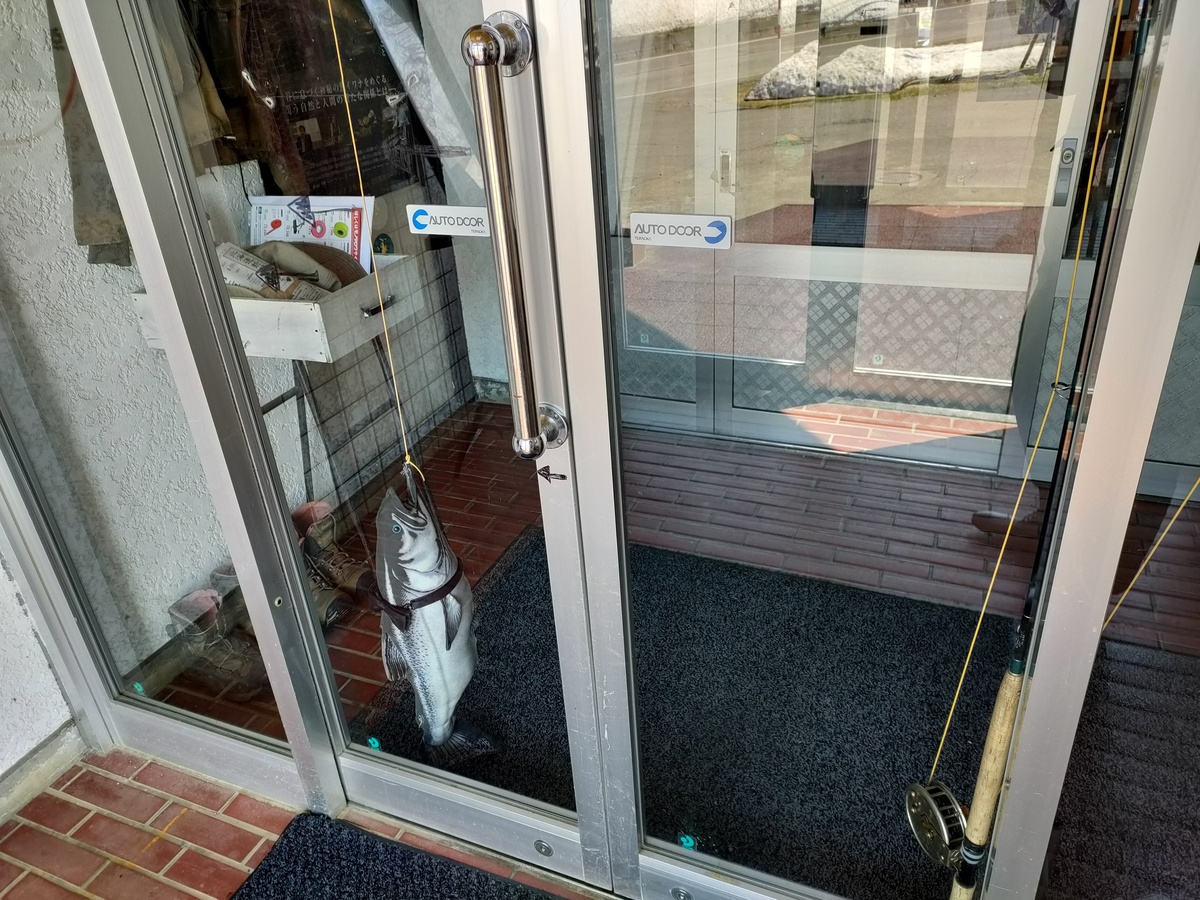 しかし扉には取手があり、その内側には釣り竿とトラウトさんが待機されています。