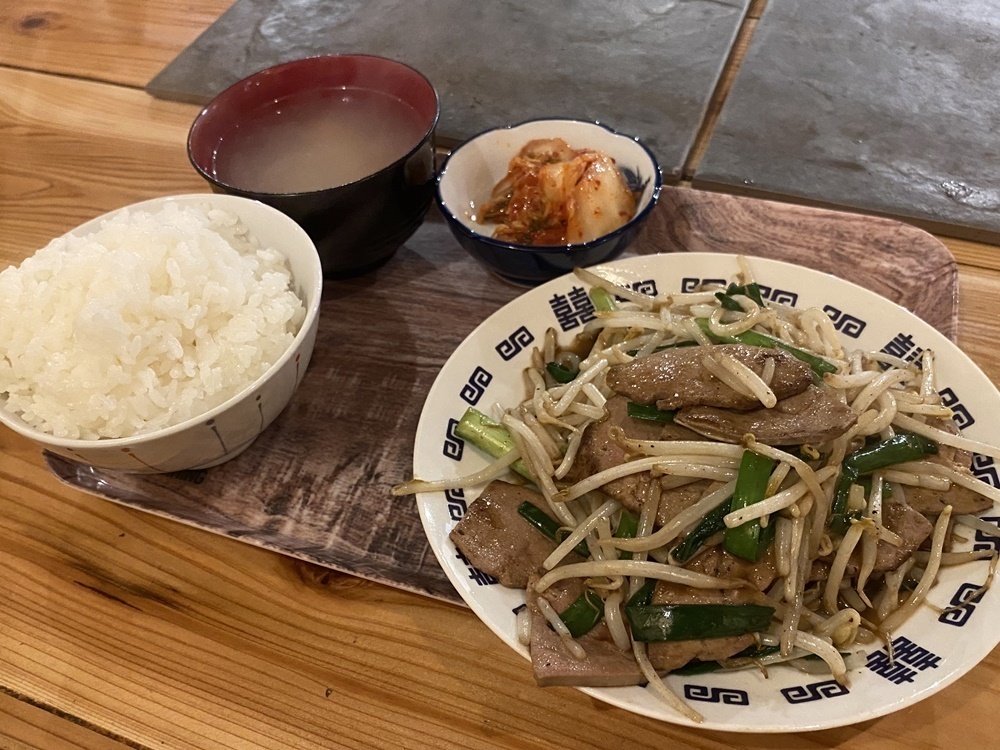 お皿からはみ出しそうなぐらいにボリューム満点。ニラとモヤシはシャキっとした食感、レバーは柔らかくて臭みを感じません。久しぶりにおいしいレバニラを頂きました。