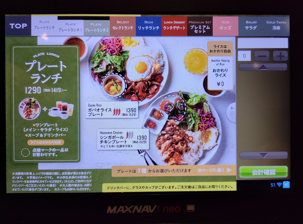 注文はタッチパネルで行うスタイル。画像も綺麗なので見やすさもあり良いですね。