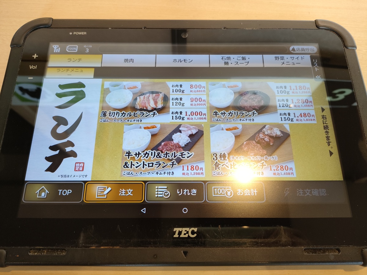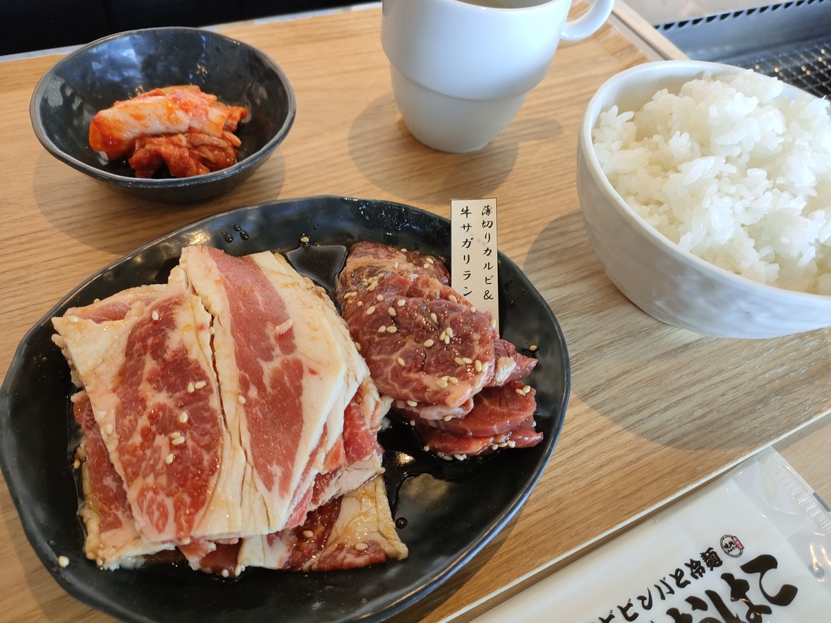 今回は「薄切りカルビ&牛サガリランチ1280円」(税込1408円)を注文させて頂きました。