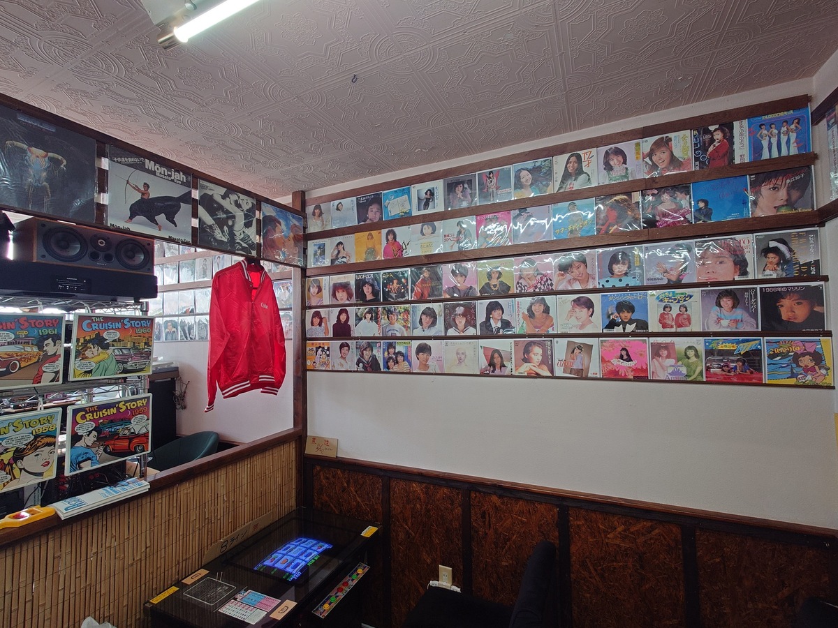 レコードジャケットがズラリと飾ってあって、50歳オーバーの年代には懐かしい物ばかり。