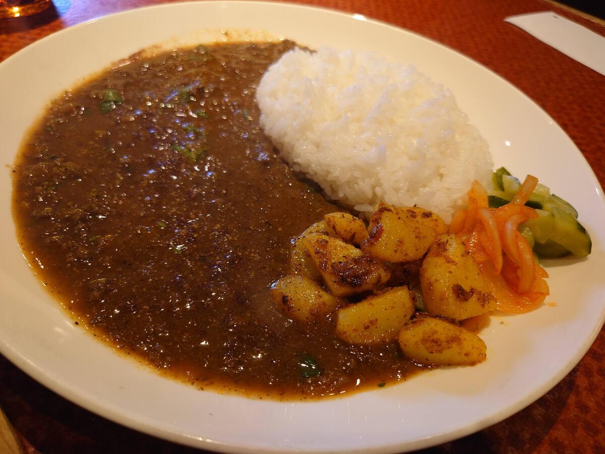 ひき肉がゴロゴロと入ってるボリューム系のカレー。
