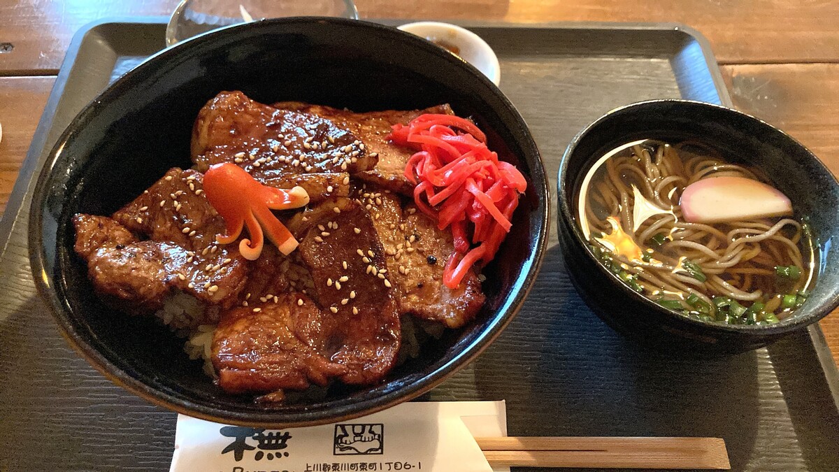 Bセットのメインは豚丼で、小さめのお蕎麦がセットになっています。
