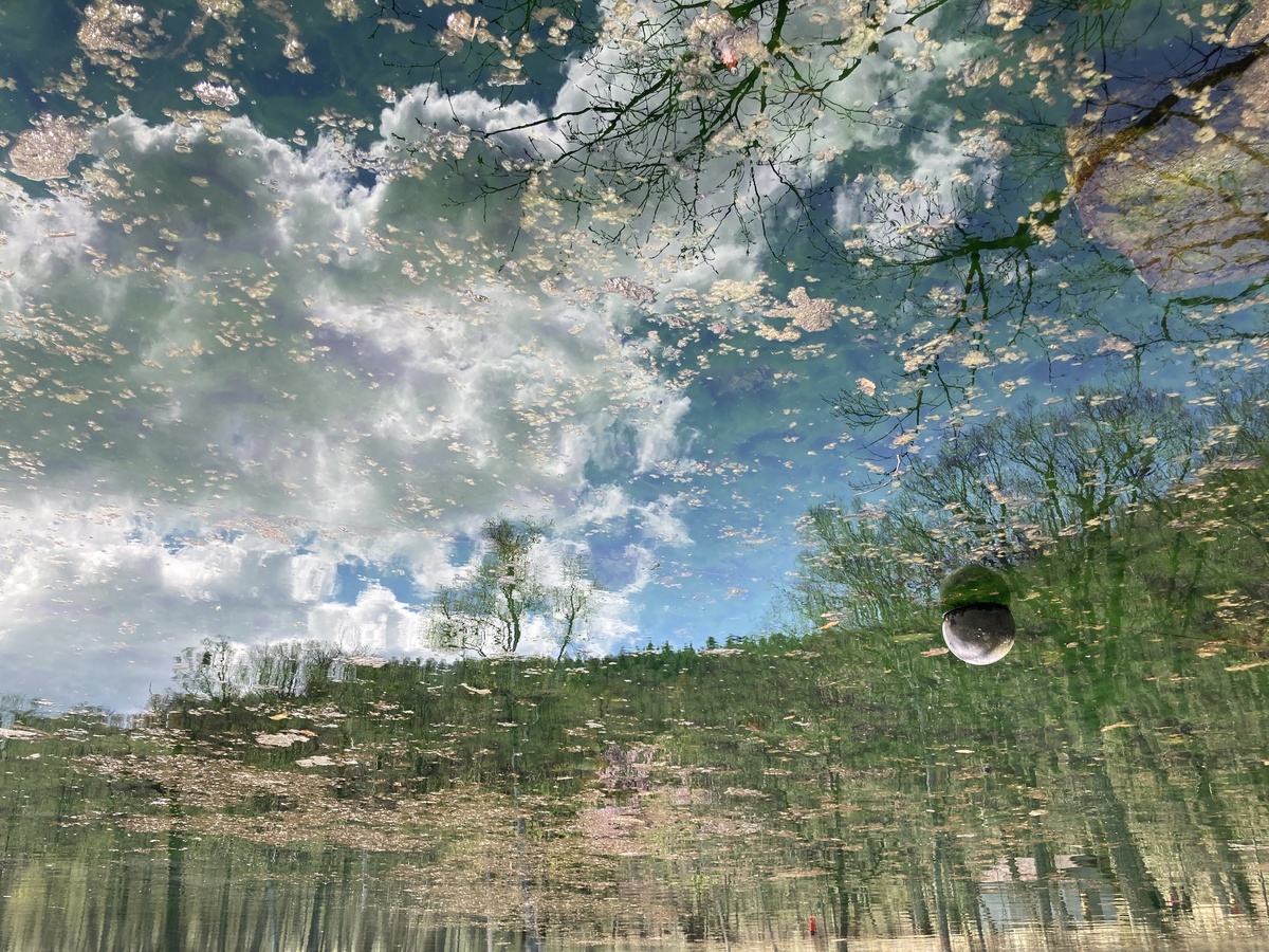 風がなく晴れている日だったので、水面には空や雲が美しく映り込む“リフレクション”が撮影できました。