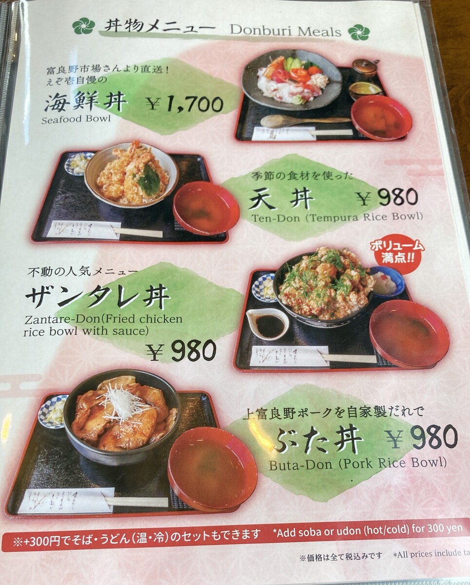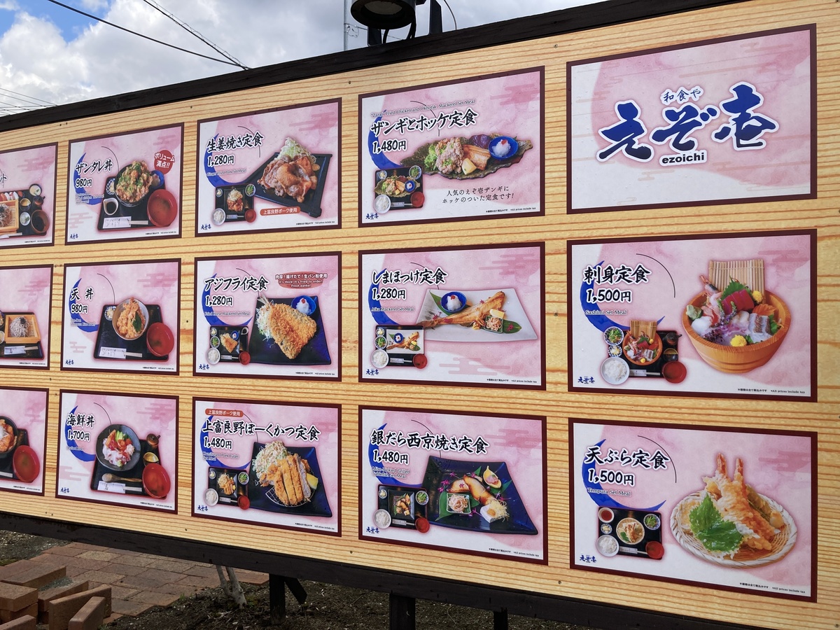 富良野市街地にある「和食や えぞ壱」は、小さめの和食ファミリーレストランのような雰囲気で、家族連れでも利用しやすいお店です。