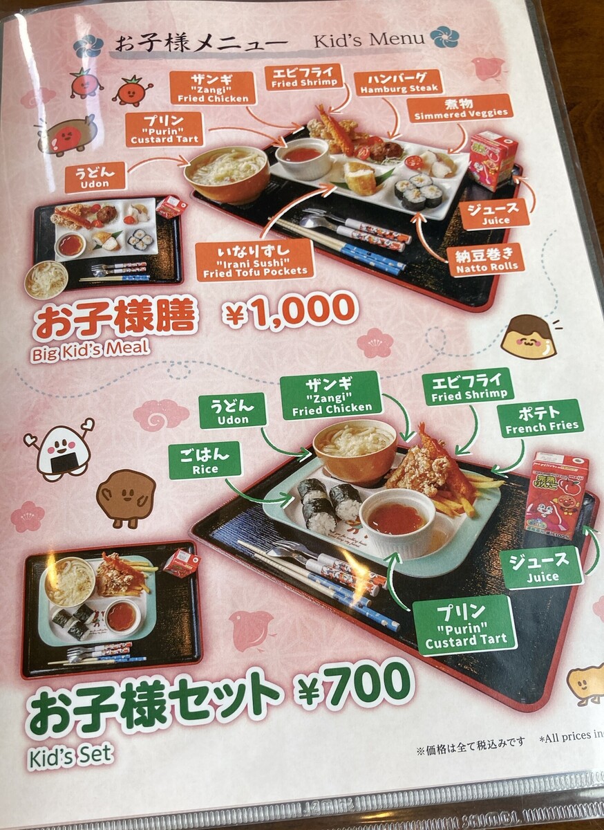 お子様メニューは2種類あり、食べる量に合わせて選べるのも嬉しいポイント。観光地でありながら1000円以下メニューや肉系・魚系メニューも豊富で、家族みんなで楽しめるお店です。
