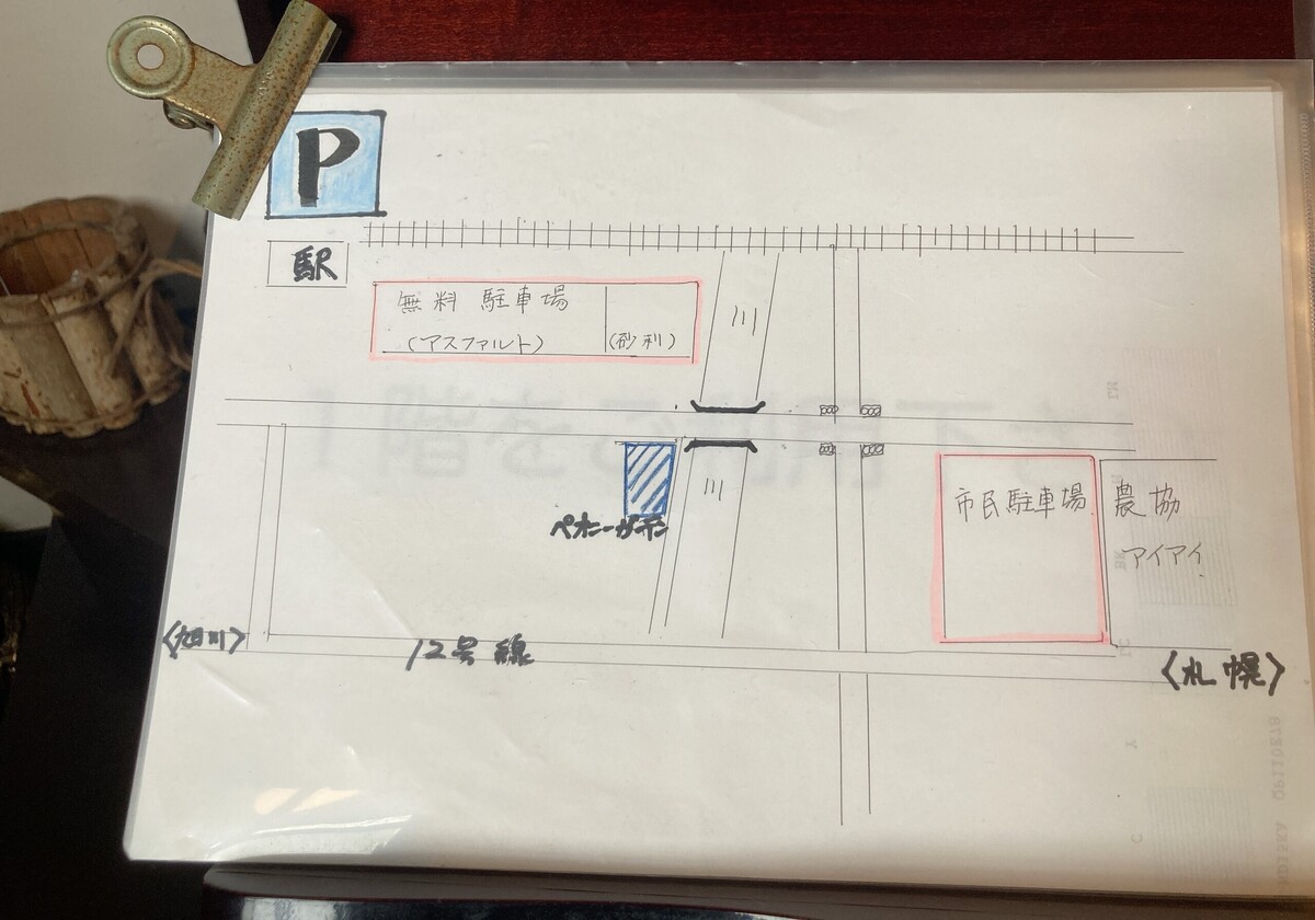 ラストオーダーぎりぎりに入ってしまったので、あまりゆっくりできなくて残念でしたが、次回はデザートも楽しみたいと思います。駐車場は、道路向かいの駅横の無料駐車場や、Aコープ新すながわAiAi店横の市民駐車場が利用可能です。
