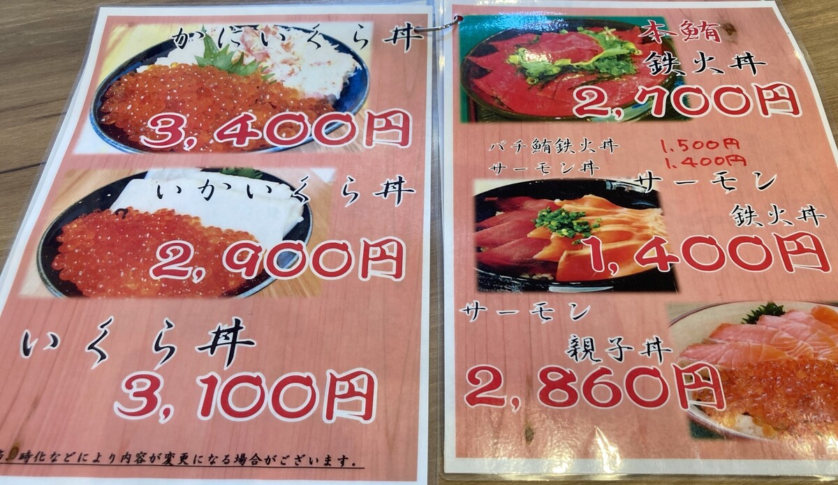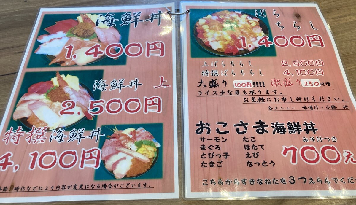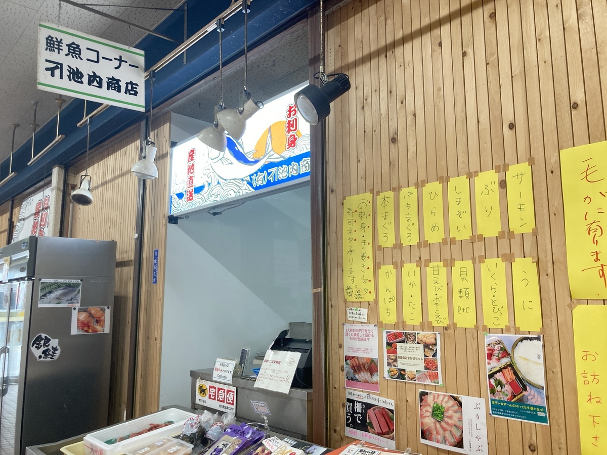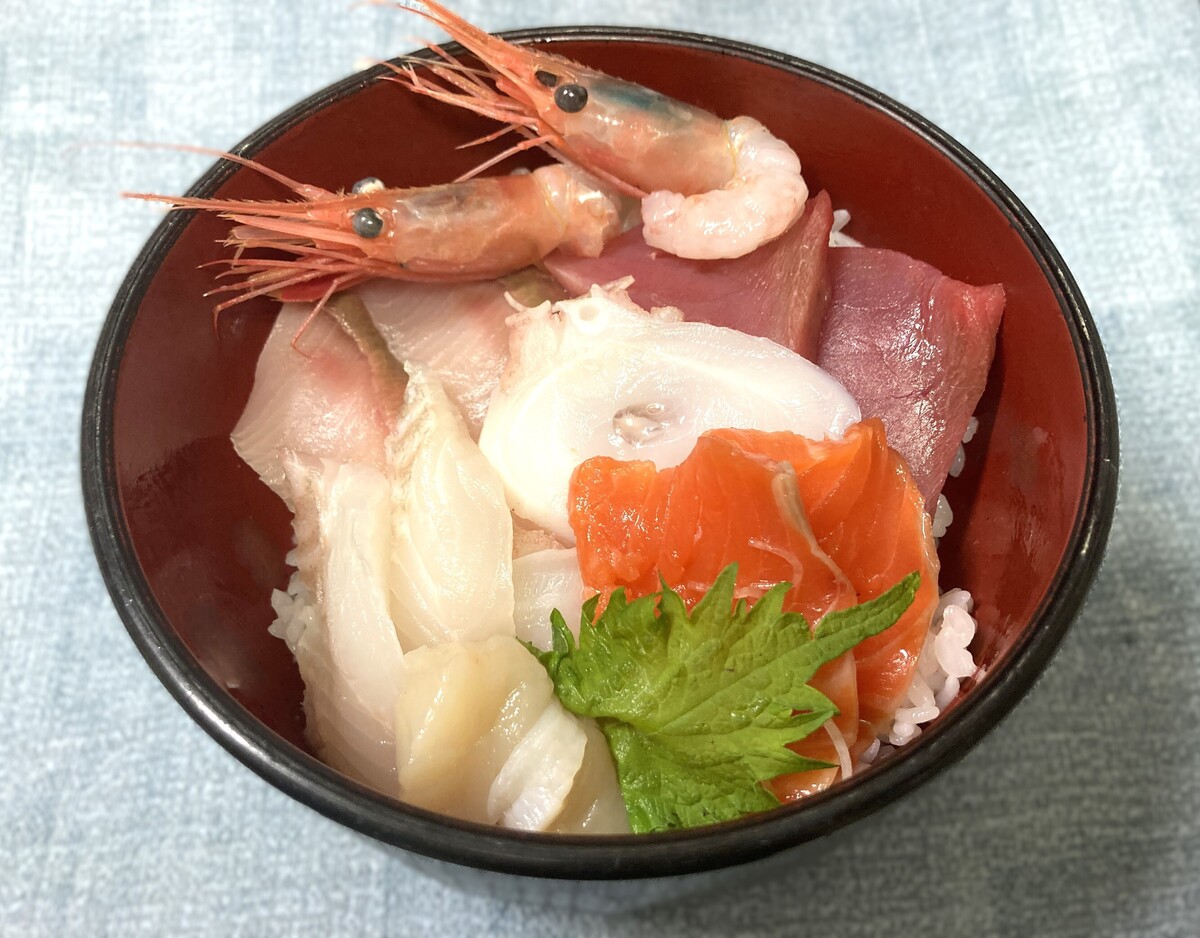 「カネイ池内」のどんぶり屋さんでは、ボリューム満点の海鮮丼が人気で、価格は1400円から。他にも握り寿司やお子様向けの海鮮丼、カレーなどもあるので家族で楽しめますね。