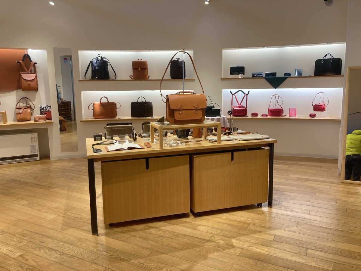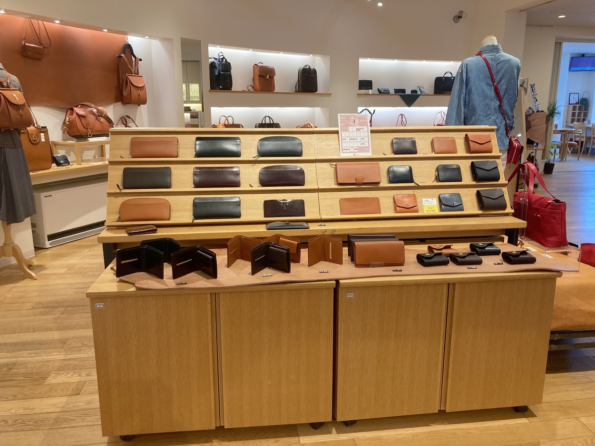 店内は明るく広々としており、お財布やカバンなどの品揃えが豊富です。POP UPストアには並んでいない製品もここでは見つかるかも?