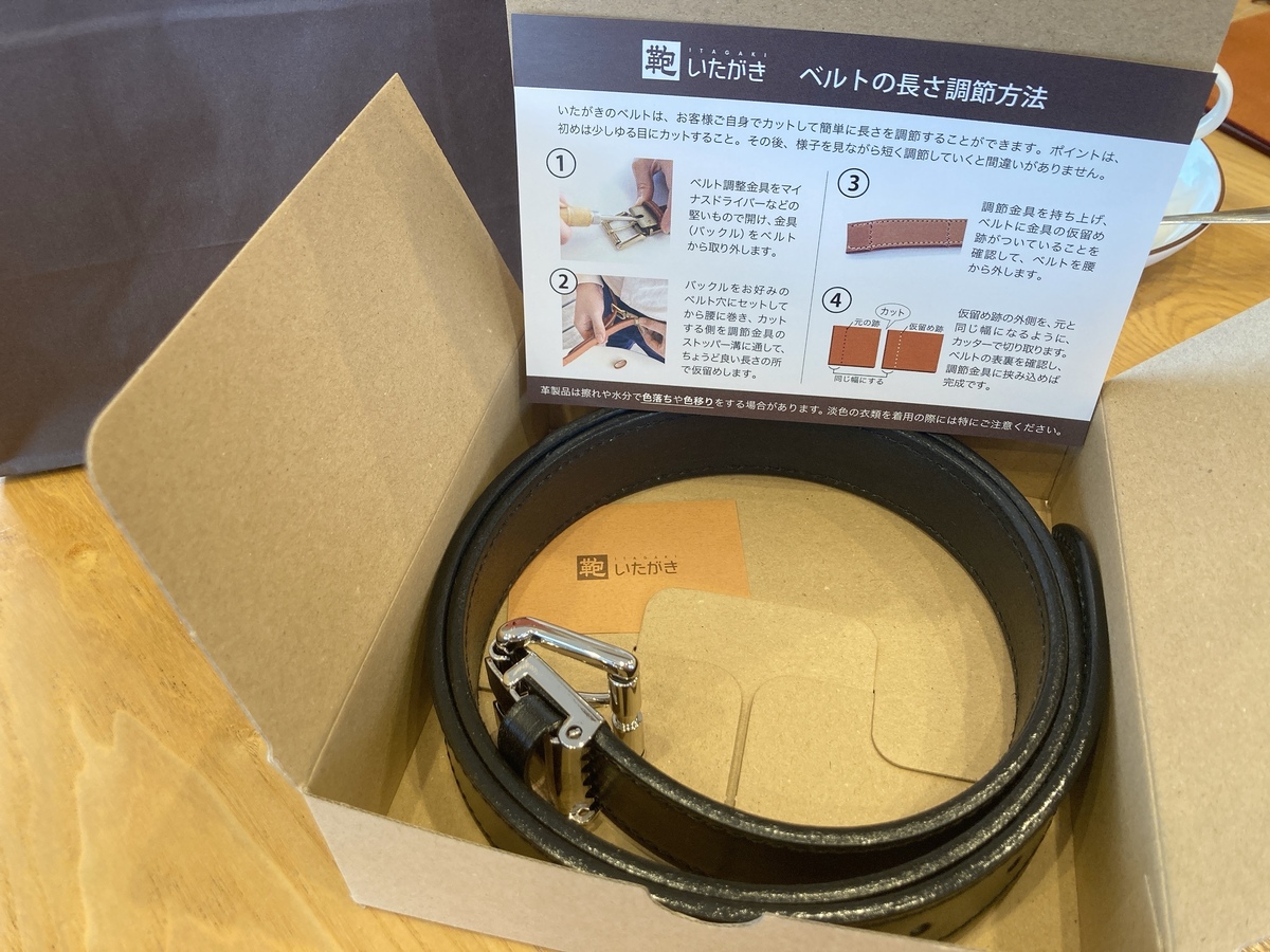 今回はベルトを購入しました。希望すれば名前の刻印サービスもしてもらえるそうで、より一層愛着が湧きそうです。ちなみに本店で現金払いにするとなんとお会計が10%オフになるとのこと!これは嬉しいサービスですね。