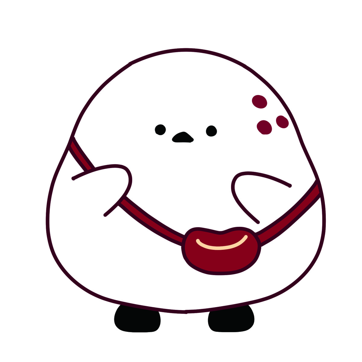 北海道内で見られる野鳥「シマエナガ」にそっくりな大福の妖精です。会期中は会場にもたまに登場しますので、ぜひ会いに来てください!