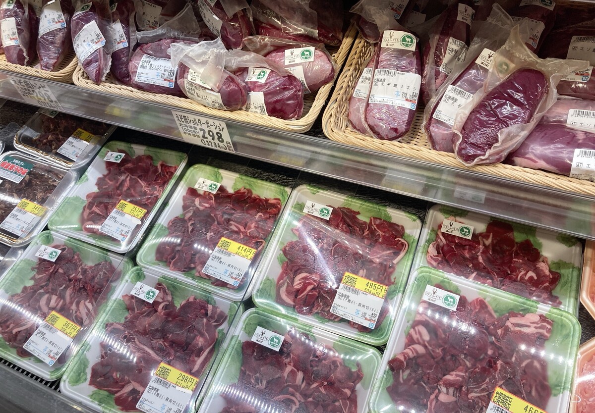 中でも驚いたのが精肉コーナー。特に鹿肉の品ぞろえが豊富で、2kg近いブロックやミスジ、切り落としなどがずらり。他ではなかなか見られない珍しい部位も手頃な価格で並んでいます。