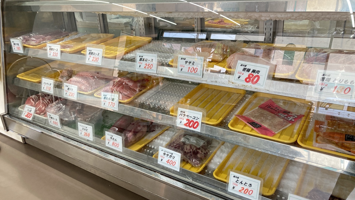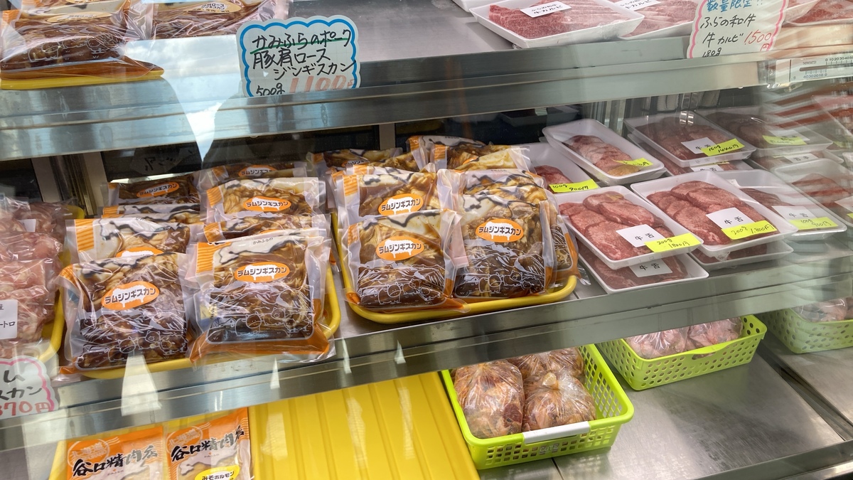 店内には量り売りの豚バラやロース、小間切れ、そしてパック詰めのジンギスカンなどがずらり。