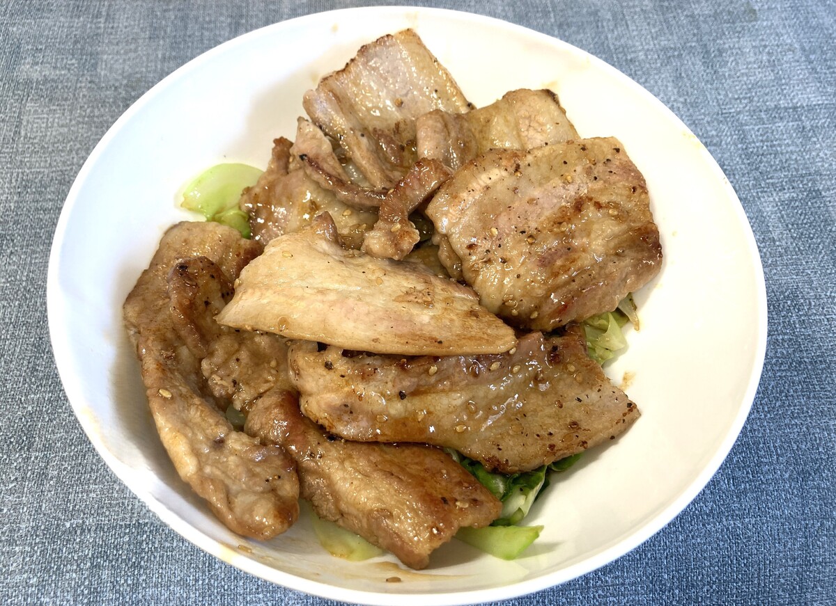 他のお肉はフライパンで焼き別の日の夕食のおかずに。豚バラは焼き肉用の厚切りなので豚丼にもぴったりです。
