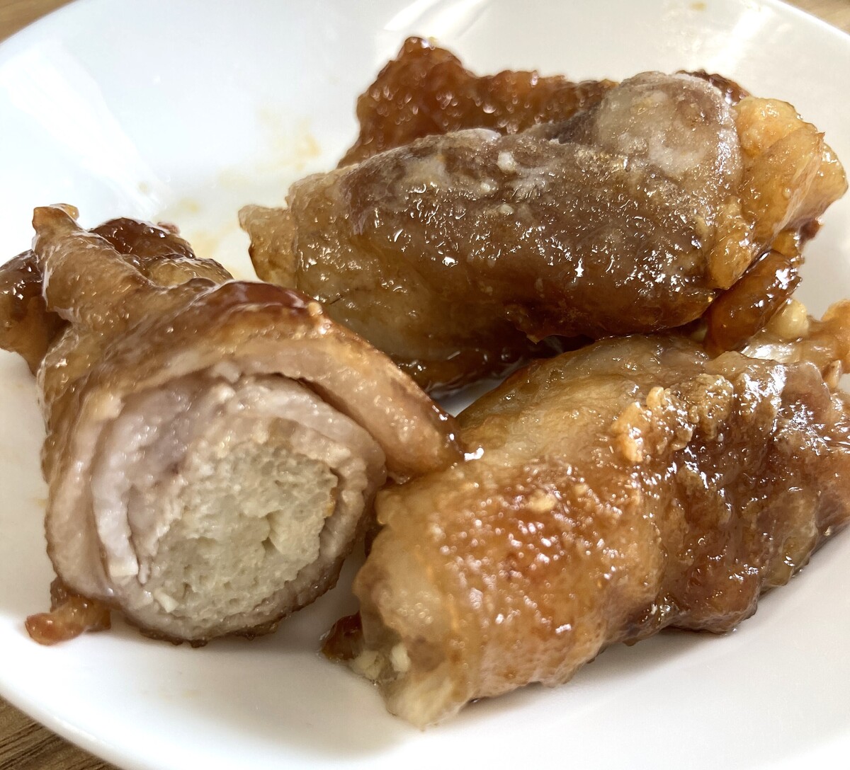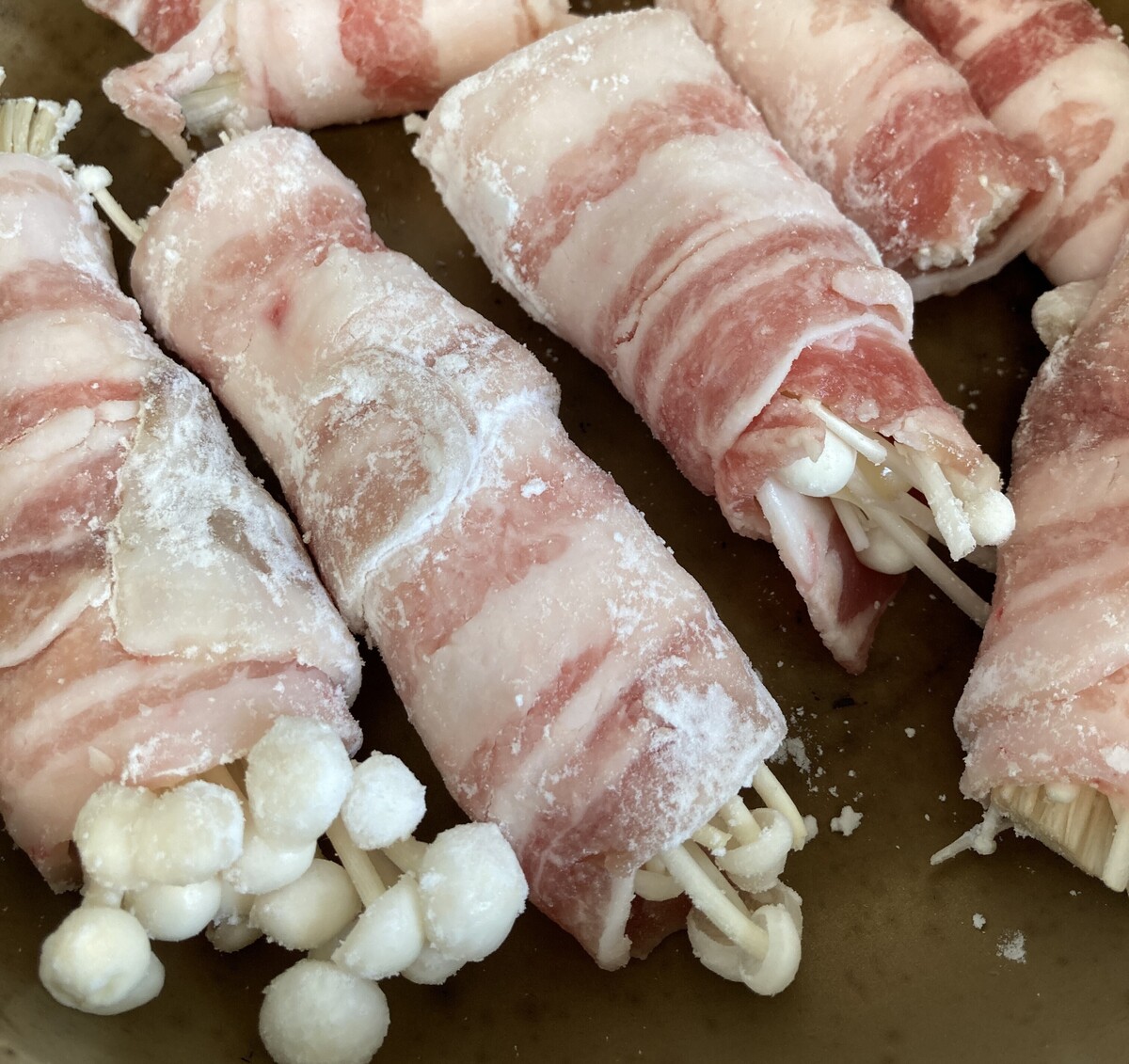 えのきを豚バラで巻いて甘辛いたれで味付けました。豚の脂を吸ったえのきがとっても美味しく、満足の一品になりました。