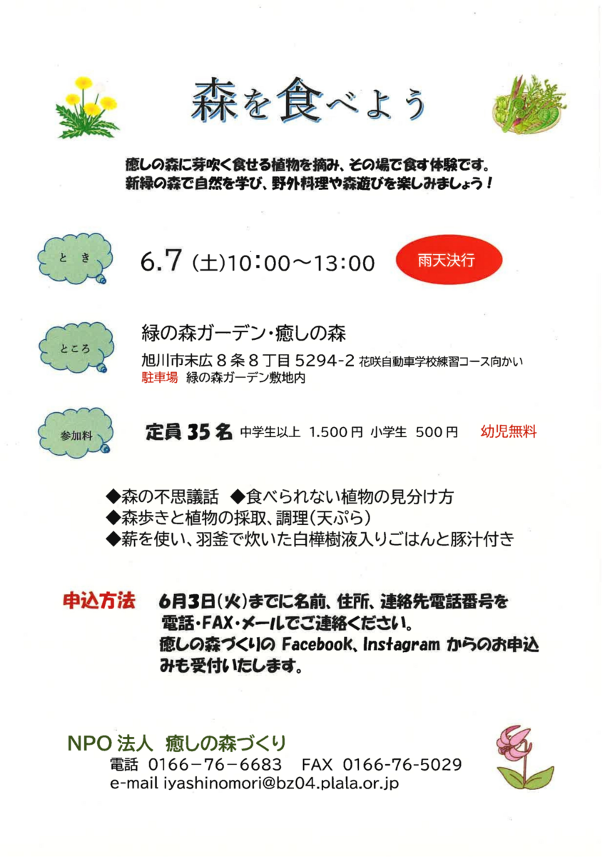 2025年6月7日(土)に旭川市の緑の森ガーデンで『森を食べよう』が開催されます。