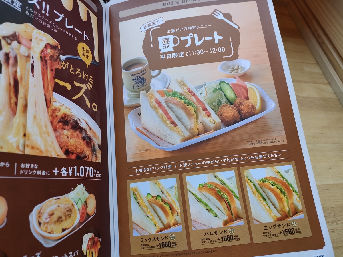 今回は「ミックスサンドの昼コメプレート」(税込660円)と「コメダブレンド」(税込520円)をオーダー致しました。