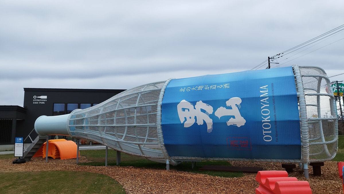 到着してすぐ目に飛び込んでくる大きな酒瓶は巨大な滑り台になっています!