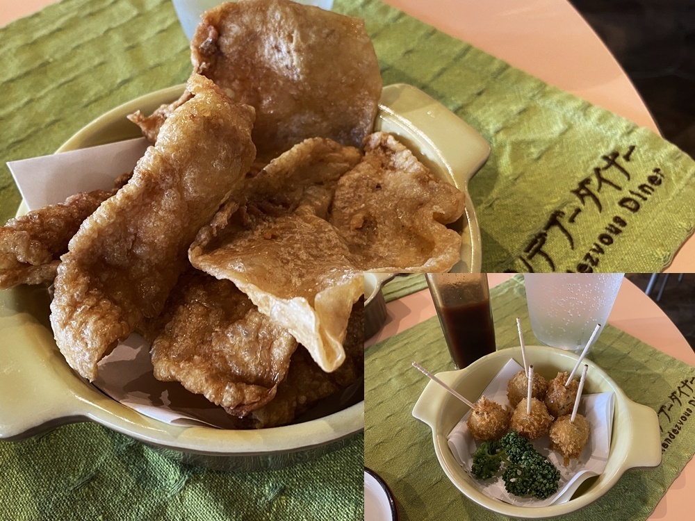 おつまみとして注文したのは、「鶏かわチップス」と「うずらの卵フライ」です。