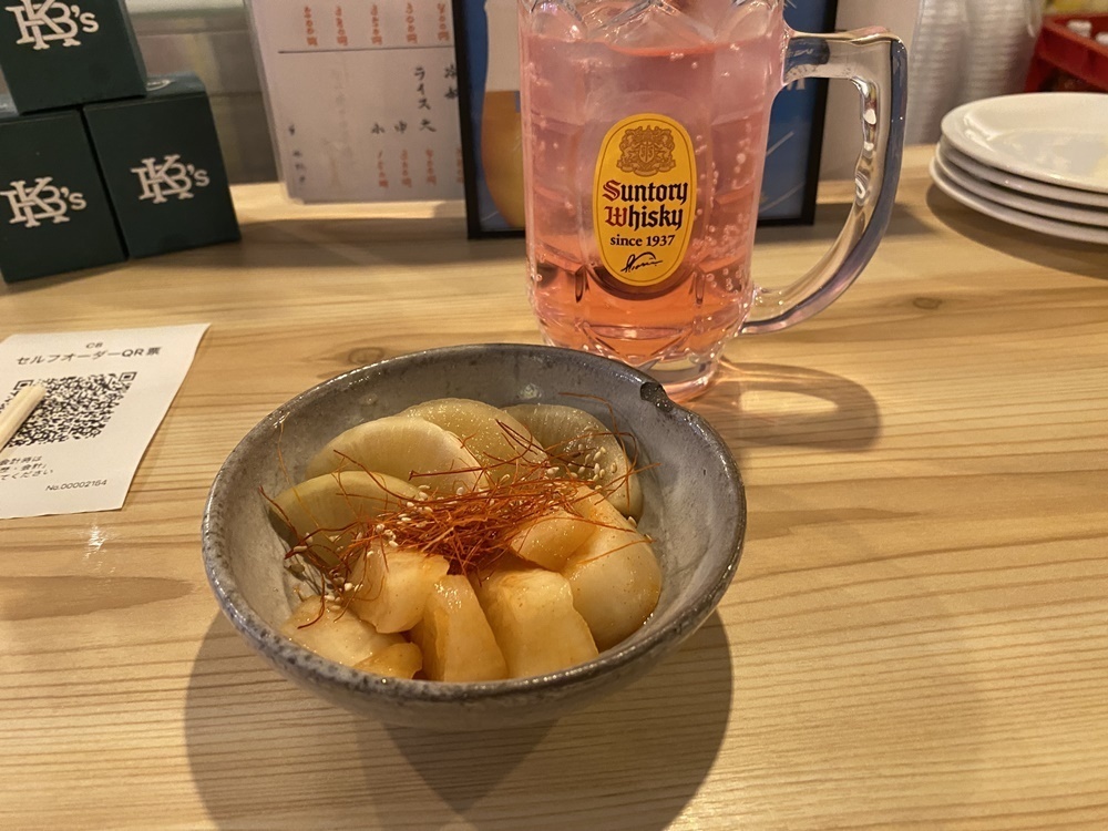 お通し代わりにどうぞとのこと。ラッキョウが大好きな筆者にはうれしいサービスです。