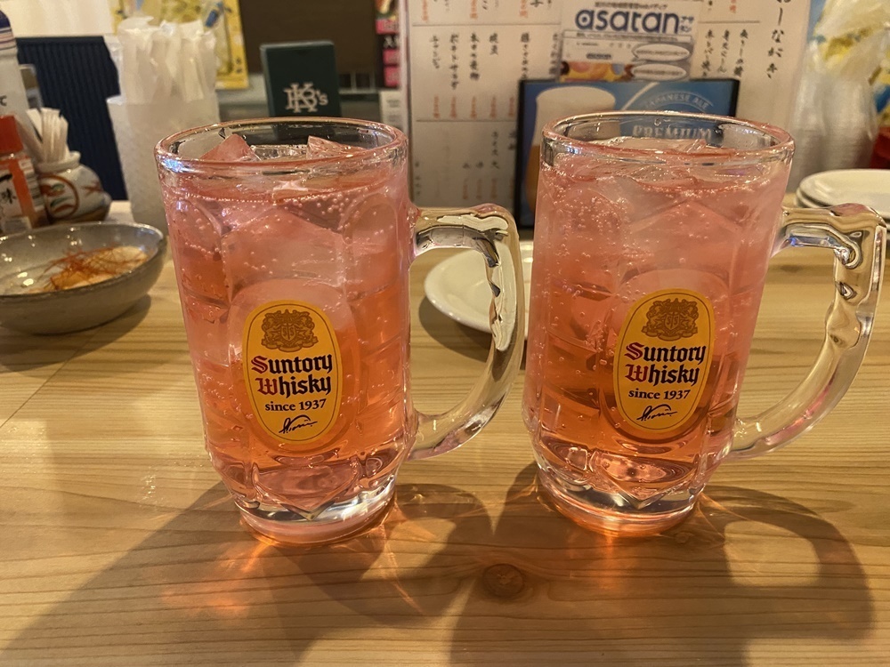 バイスサワーは下町の大衆酒場で人気のお酒で、焼酎をピンク色が特徴のシソ梅エキス入り飲料で割った飲み物です。さわやかな飲み心地と甘酸っぱい味わいがクセになります。