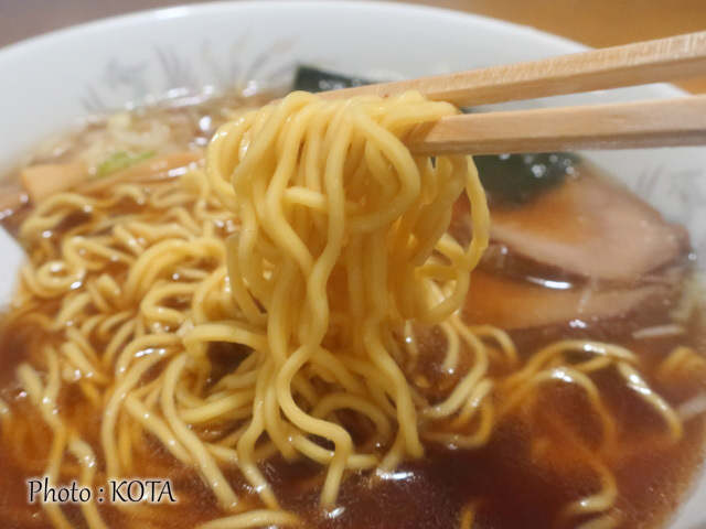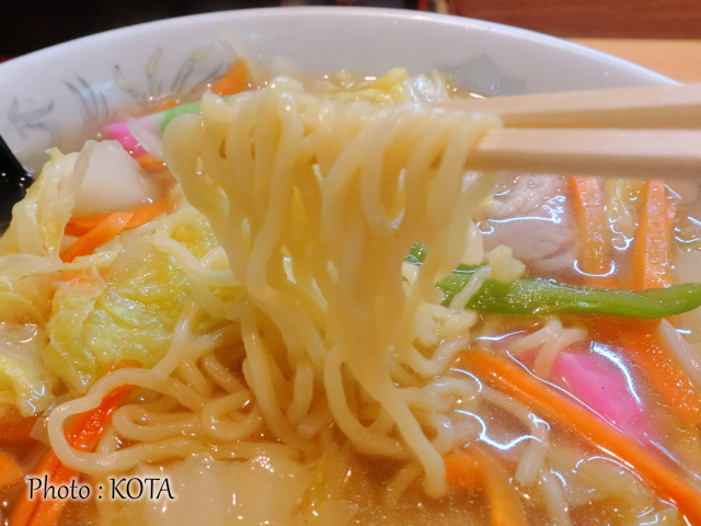 麺は、旭川市民にはお馴染みの低加水タイプ。しなやかな歯応えが食べやすい。