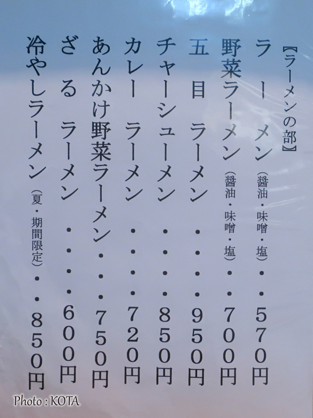 筆者もしばしば通う店。醤油、塩は完食済み。味噌は・・・、そういや辛味噌は食べている(筆者の辛味噌特集で紹介済み)のに、フツーのは食べたことがなかったな・・・
