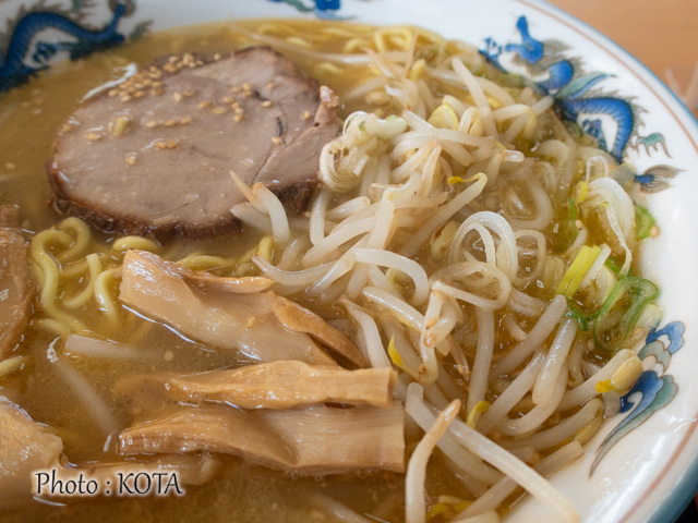 具は、チャーシューとメンマ、そして味噌にはお約束のもやし。ゴマも振りかけられている。