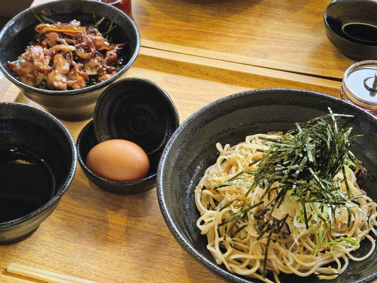 蕎麦とミニ肉丼がセットになった商品でボリューム満点!